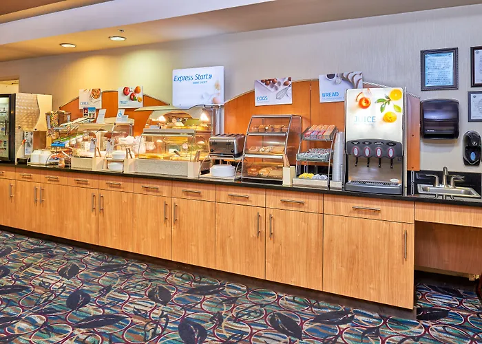 Las habitaciones del Holiday Inn Express & Suites son amplias y modernas, equipadas con comodidades como televisión por cable, microondas y conexión a internet gratuita. Cada habitación está diseñada para garantizar un descanso reparador, con cómodas camas y una selección de almohadas que cumplen con todos los gustos. El hotel también ofrece desayuno gratuito con una variedad de platos calientes y fríos, perfecto para empezar el día con energía.